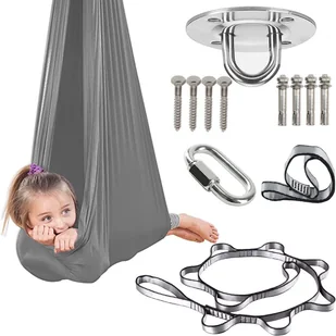 HUŚTAWKA SENSORYCZNA TERAPEUTYCZNA DLA DZIECI HAMAK 280x150cm 100kg Szara