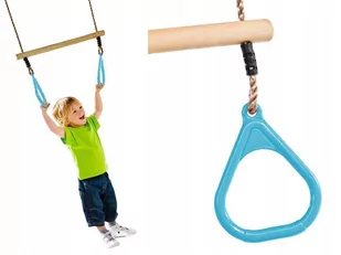 Drewniana huśtawka typu 'trapez' z obręczami gimnastycznymi Ruchliwość dzieci nie zna granic i dobrze zapewnić im odpowiednie możliwości wykonywania akrobacji. Drewniany trapez z trójkątnymi obręczami posiada szerokie zastosowanie w różnego rodzaju konstrukcjach i znakomicie rozwinie sprawność fizyczną Twojego dziecka. Z nami stworzysz najlepszy plac zabaw będący wspaniałym miejscem beztroskiej zabawy połączonej z aktywnością fizyczną. Dane techniczne: kolor: błękitny liny PP o regulowanej długości do 130 cm wymiary drążka szer.