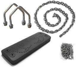 Gumowe siedzisko huśtawki z metalową wkładką - Aluminiowa wkładka - Siedzisko 43,5x17,5x3,5cm - maks. obciążenie 50 kg - Łańcuch ze stali nierdzewnej 5mm 1,80m - łatwy montaż - wyjątkowo odporny na warunki atmosferyczne - przetestowany i zatwierdzony zgodnie z najnowszymi europejskimi dyrektywami i przepisami (EN 1176)