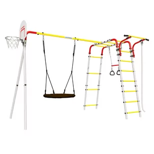 Certyfikowany plac zabaw w ogrodzie pomoże dziecku zmienić się w prawdziwego akrobatę! I to zaledwie w ciągu jednego sezonu letniego na własnej działce. WYPOSAŻENIE PLACU ZABAW DO OGRODU: drabinka gimnastyczna - 2 szt drążek z możliwością regulacji wysokości drabinka pozioma lina gimnastyczna kółka gimnastyczne z trapezem huśtawka (do wyboru) kosz do koszykówki WAŻNE: Zestaw przeznaczony dla dzieci od 3 lat i dorosłych Dopuszczalne obciążenie: 100 kg (plac zabaw), 50 kg (akcesoria) Wysokość zestawu: