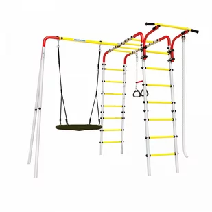 Tym samym plac zabaw będzie miejscem nie tylko wspaniałej zabawy, ale też zamieni się w znakomite miejsce do ćwiczeń. Wyposażenie placu zabaw do ogrodu: drabina metalowa - 2szt drążek do ćwiczeń z możliwością regulacji wysokości drabinka pozioma huśtawka do wyboru lina gimnastyczna kółka gimnastyczne z trapezem WAŻNE: Zestaw przeznaczony dla dzieci od 3 lat i dorosłych Dopuszczalne obciążenie: 100 kg (plac zabaw), 50 kg (akcesoria) Wysokość zestawu: