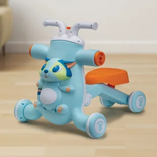 Zapewnij swojemu dziecku trzy rozwiązania zabawy w jednym dzięki tej wszechstronnej zabawce. Służy ona jako chodzik, jeździk i hulajnoga i jest odpowiednia dla dzieci w wieku od 0 do 5 lat. Montaż jest bardzo prosty i nie wymaga narzędzi. Wysokość kierownicy można regulować w dwóch pozycjach, a schowek z przodu pozwala na przechowywanie zabawek i akcesoriów.