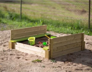 Wendy Wendy Toys Drewniana piaskownica wraz z przykryciem i siedziskami 120x120 cm