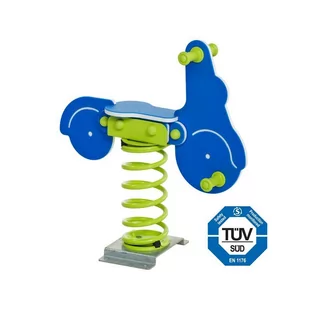 Zestaw do samodzielnego montażu. Panele wykonane z płyty HDPE (polietylen wysokiej gęstości) wszystkie o grubości 19mm. Powierzchnia paneli odporna na zarysowania oraz warunki atmosferyczne. Panele posiadają nadruki graficzne. Wzmocnione uchwyty i podnóżki, z profilem antypoślizgowym zgodne z najnowszą normą EN 1176. Sprężynowiec bujak montujemy również na specjalnych metalowych podstawach. Najwyższej jakości sprężyna wraz z zestawem montażowym, malowana proszkowo i przebadane na 500 000 cykli. Wszelkie metalowe łączniki są zabezpieczone specjalnymi plastikowymi zaślepkami co poprawia w znacznym stopniu estetykę i bezpieczeństwo urządzenia. Przy zakupie dołączona jest instrukcja użytkowania bujaka sprężynowego.
