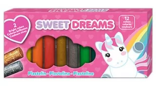 Plastelina z motywem Jednorożca Sweet Dreams idealna do prac plastycznych. Zestaw zawiera 10 klasycznych kolorów oraz 2 błyszczące srebrne i złote plasteliny do specjalnych zastosowań.