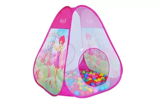 Namiot domek wróżki z piłeczkami 100 piłeczek o średnicy 6 cm Wykonany z nieprzemakalnego materiału Łatwy i szybki montaż Elastyczny stelaż