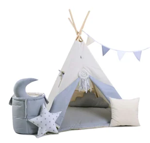 Amulet, ozdobna zawieszka czyli łapacz snów. Pokrowiec, oraz specjalna kieszonka na ulubione zabawki. Dlaczego warto kupić namiot tipi dla małego poduszki? Nowoczesny namiot Tipi, to produkt, którego poszycie i mata zostały wykonane ze starannie dobranych materiałów, przyjemnych dla skóry. Wyrób dostępny w wersji gładkiej i z nadrukiem. Wszystkie bawełniane elementy można prać w pralce z dodatkiem łagodnych detergentów.