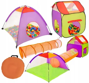 SUCHY BASEN, NAMIOT, DOMEK, TUNEL DLA DZIECI Zestaw dużych namiotów i tunel to świetna zabawa w domu i na świeżym powietrzu. Namioty są bardzo kolorowy, dzię...