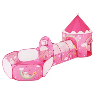 Namiot do zabawy 3 w 1 z tunelem i koszem do koszykówki o konstrukcji pop-up z motywem jednorożca idealny do domu lub ogrodu piłeczki nie są w zestawie