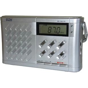 DARTEL RD-100LCD Przenośny odbiornik radiowy Dostępne funkcje: Cyfrowe strojenie (synteza PLL), wyszukiwanie stacji radiowych Odbiór stacji radiowych nadawanych na zakresie: FM (UKF)- fale ultrakrótkie; AM- fale średnie; SW- fale krótkie 5 przycisków pamięciowych: możliwość zapisania wybranych stacji radiowych Podświetlany wyświetlacz Zegar z funkcją budzika Funkcja Sleep- automatyczne wyłączanie radia po ustawionym czasie Zasilanie z sieci 230V Zasilanie bateryjne Gniazdo słuchawkowe Antena teleskopowa, obrotowa do odbioru na zakresie FM Rączka do wygodnego przenoszenia Dane techniczne: zakres fal: