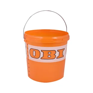 Wiadro z logo OBI o pojemności 10 l wykonane jest z tworzywa sztucznego w kolorze pomarańczowym. Posiada uchwyt ze stalowego pręta. Ma uniwersalne zastosowanie w gospodarstwie domowym i w ogrodzie. Użyte z pokrywą, może służyć do przechowywania różnych sypkich materiałów. Wiaderko może być stosowane do przechowywania żywności.