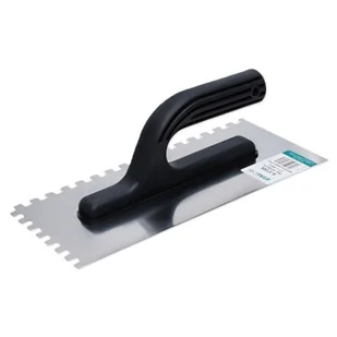 Uniwersalna paca nierdzewna o wymiarach 280 x 128 mm z zębami 8 x 8 to narzędzie przydatne w szerokim zakresie prac budowlanych. Sprawdzi się do nakładania, rozprowadzania, zacierania i wyrównywania powierzchni pokrytych masami budowalnymi. Można wykorzystać ją do pracy z masami gipsowymi, tynkami, zaprawami murarskimi i wieloma innymi materiałami. Paca STALCO jest wykonana z blachy nierdzewnej o grubości 0,7 mm. Do operowania służy uchwyt z tworzywa sztucznego o ergonomicznej końcówce.