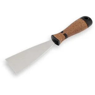 Szpachla marki Stalco o szerokości: 120 mm. Ergonomiczna rękojeść pokryta korkiem naturalnym. Blat ze stali nierdzewnej hartowanej, szlifowany grubościowo.