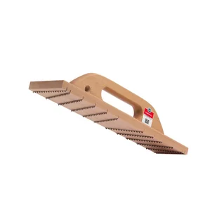 Najdłuższy zdzierak do betonu komórkowego w portfolio marki COMENSAL z 12 poprzecznymi nożami o ostrych ząbkowanych ostrzach wykonanymi z hartowanej stali stabilnie i trwale osadzonymi w drewnianej podstawie, z długim drewnianym uchwytem umożliwiającym pracę dwiema dłońmi. Narzędzie przeznaczone do ciężkiej pracy w trudnych warunkach. Umożliwia skuteczne zdzieranie i równanie powierzchni betonu komórkowego przygotowując ją pod dalsze prace budowlane i remontowe. Całkowity wymiar podstawy wynosi: 470x90mm. Narzędzie zostało wykonane z najwyższej jakości surowców od sprawdzonych dostawców.