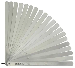 Rozmiary płytek metryczne. Do pomiaru szczelin, luzów w łożyskach itp. W oprawce niklowanej, zamykanej, kształt płytek zbieżny.