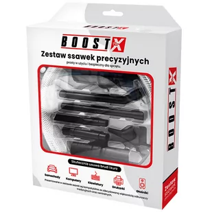 Zestaw ssawek precyzyjnych BOOST X Zestaw BOOST X to doskonały produkt, który znajduje swoje zastosowanie przy bardzo delikatnym technicznym odkurzaniu gdzie potrzebna jest precyzja i dokładność. Ssawki przeznaczone do odkurzacza centralnego, które zapewnią ci precyzyjną czystość Twoich powierzchni. Idealnie sprawdzą się do czyszczenia sprzętu komputerowego (małe szczeliny w komputerze, klawiaturze, drukarki), odkurzania samochodu (radio, schowki, nawiewniki, konsole samochodowe), odkurzanie sprzętu domowego, kaloryferów, szczelin, parapetu, szafek półek i szuflad. Typ: Ssawki precyzyjne techniczne Pasują do średnic wewnętrznych 32/35 [mm] Wąż o długości 90 [cm] Mini okrągła szczoteczka dł. 72 [mm], długość włosia 14 [mm] Mini szczotka do kurzu dł.