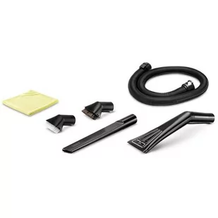 Zestaw do czyszczenia wnętrz samochodowych marki Kärcher jest doskonały do dokładnego czyszczenia wszystkich wewnętrznych powierzchni samochodu. Zestaw składa się z przedłużki węża ssącego o długości 1,5 m, długiej ssawki szczelinowej, ssawki samochodowej, uniwersalnej ściereczki z mikrofibry oraz dwóch ssawek szczotkowych z miękką i twardą szczeciną.