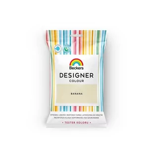 Beckers Tester koloru Designer Colour banana 50 ml Emulsja marki Beckers z serii Designer Colour w kolorze banana to wysokiej jakości, wodorozcieńczalna farba lateksowa. Przeznaczona jest do malowania ścian i sufitów. Wydziela nieznaczny zapach podczas aplikacji i schnięcia. Daje piękny efekt matowego wykończenia. Tworzy powłokę odporną na mycie wodą z dodatkiem detergentu.
