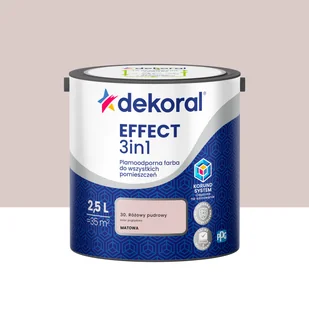 EFFECT 3in1 to plamoodporna farba rekomendowana do malowania wszystkich pomieszczeń, jak salon, sypialnia, pokój dziecięcy, korytarz, kuchnia i łazienka. Dzięki zawartości twardych jak diament kryształów korundu, posiada doskonałą odporność na zmywanie i szorowanie - bez zacieków. Dlatego umożliwia miejscowe czyszczenie stref najbardziej narażonych na zabrudzenia, jak okolice kontaktów, korytarze, dolna strefa ściany. Matowe wykończenie pozwala zamaskować niewielkie niedoskonałości podłoża. Farba silnie kryje, doskonale się rozprowadza i nie chlapie, gwarantując łatwość malowania i znakomity efekt nawet dla początkujących.