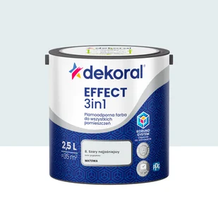 EFFECT 3in1 to plamoodporna farba rekomendowana do malowania wszystkich pomieszczeń, jak salon, sypialnia, pokój dziecięcy, korytarz, kuchnia i łazienka. Dzięki zawartości twardych jak diament kryształów korundu, posiada doskonałą odporność na zmywanie i szorowanie - bez zacieków. Dlatego umożliwia miejscowe czyszczenie stref najbardziej narażonych na zabrudzenia, jak okolice kontaktów, korytarze, dolna strefa ściany. Matowe wykończenie pozwala zamaskować niewielkie niedoskonałości podłoża. Farba silnie kryje, doskonale się rozprowadza i nie chlapie, gwarantując łatwość malowania i znakomity efekt nawet dla początkujących.