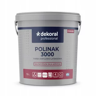 ⭐️Farba Polinak 3000 Mat 15L Biała Przeznaczenie : Farba przeznaczona do malowania ścian i sufitów wewnątrz pomieszczeń w tym również garaży. Doskonała do różnego typu podłoży budowlanych, takich jak tynki cementowe, cementowo-wapienne, gipsowe, płyty gipsowo kartonowe, beton, tynki wapienne. Optymalna do malowania zarówno surowych jak i wcześniej malowanych podłoży. Może być stosowana w obiektach użyteczności publicznej, służby zdrowia jak również w budownictwie indywidualnym.