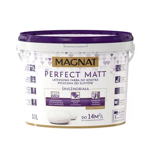 MAGNAT Perfect Matt to farba głęboko matowa przeznaczona do wnętrz, polecana do sufitów. Tworzy antyrefleksyjną powłokę redukującą smużenia, niwelującą niedoskonałości podłoża. Zapewnia jednolite wykończenie niezależnie od kąta padania światła. Nakładać za pomocą pędzla, wałka lub natrysku hydrodynamicznego Magnat Perfect Matt przeznaczona jest do malowania ścian i sufitów wewnątrz pomieszczeń: z zapraw cementowych, cementowowapiennych,wapiennych, gipsowych, płyt gipsowokartonowych, drewnianych, drewnopochodnych oraz z włókna szklanego.