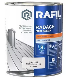 Farba Na Dach Radach 10L Biały Sygnałowy Półmat RAL 9003 Rafil Producent: Rafil Kod kreskowy: 5900105809308 Cechy produktu: Kod producenta: Zastosowanie: