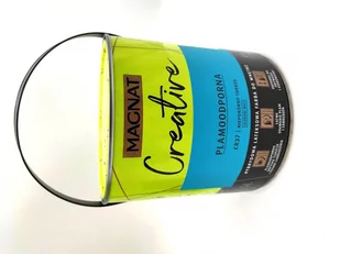 Plamoodporność potwierdzona na plamach z: koncentratu z buraków, majonezu, masła, oliwy z oliwek, napoju coli, soku pomarańczowego. Ze względu na mnogość potencjalnych zabrudzeń produktami różnych producentów, jak również specyfikę malowanego podłoża mogą występować plamy, które z powierzchni będą trudne do usunięcia. Magnat Creative to farba hybrydowa, łącząca ze sobą dwie właściwości: odporność na płynne zabrudzenia(hydrofobowość) oraz odporność na tłuszcze (oleofobowość).
