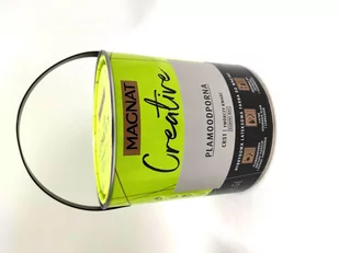 Plamoodporność potwierdzona na plamach z: koncentratu z buraków, majonezu, masła, oliwy z oliwek, napoju coli, soku pomarańczowego. Ze względu na mnogość potencjalnych zabrudzeń produktami różnych producentów, jak również specyfikę malowanego podłoża mogą występować plamy, które z powierzchni będą trudne do usunięcia. Magnat Creative to farba hybrydowa, łącząca ze sobą dwie właściwości: odporność na płynne zabrudzenia(hydrofobowość) oraz odporność na tłuszcze (oleofobowość).