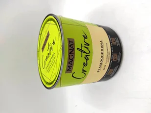 Plamoodporność potwierdzona na plamach z: koncentratu z buraków, majonezu, masła, oliwy z oliwek, napoju coli, soku pomarańczowego. Ze względu na mnogość potencjalnych zabrudzeń produktami różnych producentów, jak również specyfikę malowanego podłoża mogą występować plamy, które z powierzchni będą trudne do usunięcia. Magnat Creative to farba hybrydowa, łącząca ze sobą dwie właściwości: odporność na płynne zabrudzenia(hydrofobowość) oraz odporność na tłuszcze (oleofobowość).