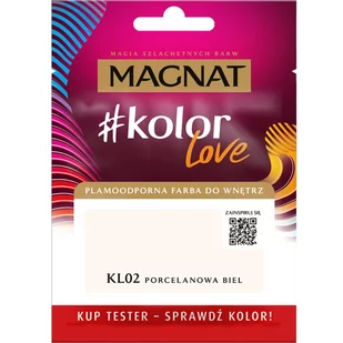 MAGNAT #kolorLove to farba lateksowa wysokiej jakości, którą można pomalować ściany i sufity w pomieszczeniach takich jak salon, sypialnia, korytarz lub kuchnia. Tworzy matową i plamoodporną powłokę oraz ma gwarantowaną* siłę krycia.