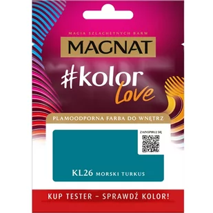 Tester farb MAGNAT #kolorLove to saszetka która jest wypełniona farbą. To praktyczne rozwiązanie, które pozwala na malowanie niewielkiego fragmentu ściany farbą z wybranym kolorem. Dzięki temu możesz ocenić, czy kolor pasuje do warunków panujących w danym pomieszczeniu.