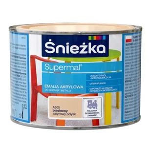 Emalia akrylowa ŚNIEŻKA z serii SUPERMAL Śnieżka Supermal to emalia do zastosowania zarówno wewnątrz, jak i na zewnątrz obiektów, wyprodukowana przy zachowaniu norm PN-EN 71-2 i PN-EN 71-3 "Bezpieczeństwo zabawek". Wyjątkowa i oryginalna formuła tworzy trwałe powłoki na materiałach drewnianych, drewnopochodnych, metalowych oraz stalowych czy żeliwnych, które pozwalają na zachowanie idealnego wyglądu i koloru ścian. Wysoka odporność na mycie i szorowanie sprawia, że z pomalowanych powierzchni niezwykle łatwo usunąć plamy i zabrudzenia. Zalety emalii ŚNIEŻKA z serii SUPERMAL - prosta aplikacja - łatwość usuwania powstałych zabrudzeń - doskonałe krycie powierzchni - wodorozcieńczalność Kolor emalii ŚNIEŻKA z serii SUPERMAL Zastosowanie emalii ŚNIEŻKA z serii SUPERMAL ŚNIEŻKA SUPERMAL to produkt przeznaczony przede wszystkim do dekoracyjno-ochronnego malowania wewnątrz i na zewnątrz pomieszczeń. Służy do krycia powierzchni okien, mebli, drzwi, zabawek czy wyposażenia placów zabaw.