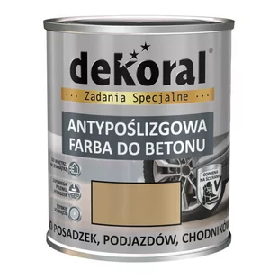 Prezentowana emalia do podłóg Dekoral Akrylit w odcieniu beżowym to produkt przeznaczony do stosowania przez profesjonalistów. Środek ten wykorzystywany jest do malowania powierzchni betonowych wewnątrz budynków - np. posadzek czy podjazdów - sprawdza się wszędzie tam, gdzie wymagane jest użycie antypoślizgowej emalii. Beżowy odcień farby pasować będzie do większości pomieszczeń.