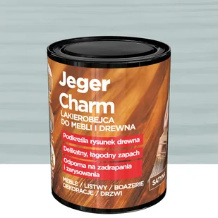 Jeger Lakierobejca Charm to wytrzymała, dekoracyjno-ochronna farba do wszelkiego rodzaju powierzchni drewnianych wewnątrz pomieszczeń (meble, listwy, boazerie, drzwi, itp.). Farba jest wodoodporna i odporna na ścieranie.