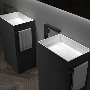 Bernstein Umywalka stojąca TWZ312 odlew mineralny - czarny mat - wieszak na ręcznik