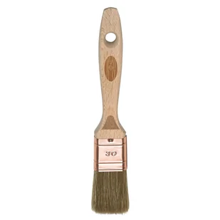 Pędzel płaski BTV 30 mm do bejc i impregnatów Pędzel znajdzie zastosowanie w wielu sytuacjach – o jego wszechstronności decyduje fakt, że można aplikować nim lakiery, lakierobejce, a także farby rozpuszczalnikowe. Posiada drewniany profilowany uchwyt, co zapewnia poczucie komfortu w czasie jego użytkowania. Możesz zastosować go np. podczas prac wykończeniowych. Zastosowano włosie, które jest odporne na ścieranie , co znacząco przedłuża okres użytkowania.