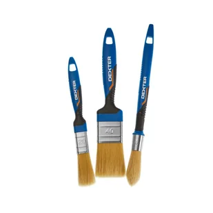 Zestaw do malowania Dexter składający się z 3 płaskich pędzli z niebieską polipropylenową rączką, stalową końcówką i włosiem ze 100% syntetycznego włókna jedwabiu. Idealnie nada się do malowania lub bejcowania każdego rodzaju powierzchni. Pędzle mają ergonomiczny kształt, dzięki czemu są łatwiejsze do uchwycenia. Po użyciu można je łatwo wyczyścić wodą. Posiadają także mały otwór w rączce, dzięki któremu można je umieścić na haczykach, zachowując uporządkowaną przestrzeń.