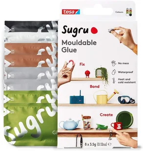 tesa Sugru uniwersalny klej formowalny – wszechstronna silikonowa guma do napraw, klejenia i mocowania bez wiercenia – ośmiopak, 8 x 3,5 g, kolor: czarny, biały, zielony, brązowy & szary
