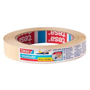 Tesa Taśma malarska Standard 50 m x 19 mm Taśma tesa® Standard to uniwersalna taśma malarska, o której powinien pomyśleć każdy majsterkowicz w przypadku malowania ściany lub remontu domu. Użyj tej wszechstronnej taśmy malarskiej do skutecznego zabezpieczenia powierzchni niemal w każdej sytuacji. Jest dostępna w trzech szerokościach dostosowanych do wielu różnych zastosowań. Taśma posiada warstwę kleju bezrozpuszczalnikowego, dzięki czemu dobrze przywiera do większości powierzchni. Jednocześnie można ją łatwo usunąć bez pozostawiania śladów.