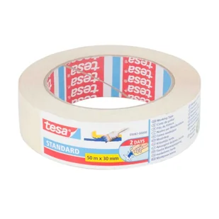 Tesa Taśma malarska Standard 50 m x 30 mm Taśma tesa® Standard to uniwersalna taśma malarska, o której powinien pomyśleć każdy majsterkowicz w przypadku malowania ściany lub remontu domu. Użyj tej wszechstronnej taśmy malarskiej do skutecznego zabezpieczenia powierzchni niemal w każdej sytuacji. Jest dostępna w trzech szerokościach dostosowanych do wielu różnych zastosowań. Taśma posiada warstwę kleju bezrozpuszczalnikowego, dzięki czemu dobrze przywiera do większości powierzchni. Jednocześnie można ją łatwo usunąć bez pozostawiania śladów.