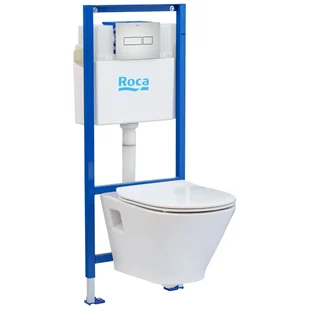 Zestaw podtynkowy Luca marki Roca Jest to kompletny zestaw do zabudowy lekkiej składający się ze stelaża, wiszącej miski, chromowanego przycisku oraz deski sedesowej. Producent udziela gwarancji: 5 lat na ceramikę, zawór napełniający i mechanizm spłukujący, 10 lat na ramę stelaża i szczelność zbiornika, 2 lata na deskę i pozostałe elementy. Kompletny stelaż podtynkowy do WC Wszystkie elementy potrzebne do instalacji w komplecie, Kolanko odpływowe DN90/DN110 regulowane w 3 pozycjach, z możliwością skierowania w dół lub w bok. Oszczędność miejsca Regulowane mocowania ścienne (130-180 mm) z możliwością instalacji narożnej stelaża Oszczędność wody Fabryczne ustawienie spłukiwanie 4,5/3l z możliwością regulacji do 4/2 lub 6/3l.