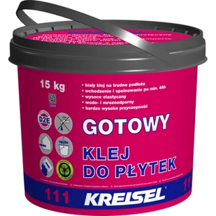 Klej do płytek dyspersyjny 111 gotowy D2E 15 kg biały KREISEL