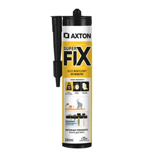 Klej montażowy Axton Super Fix jest łatwy w użyciu i zapewnia mocną przyczepność, co zapewnia długotrwałe trzymanie. Jest idealny do projektów DIY w domu lub dla profesjonalistów budowlanych. Dzięki specjalnej formule gwarantuje solidne i niezawodne mocowanie, nawet w przypadku najcięższych przedmiotów. Ponadto 10-minutowa możliwość zmiany położenia pozwala na precyzyjną regulację przed całkowitym wyschnięciem kleju. Stosuje się do porowatego podłoża Stosuje się do porowatego podłoża (drewno, listwy, tynk, beton, tynk, powłoka cementowa, cegła).