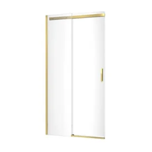 Drzwi wnękowe z przesuwnym systemem jezdnym wykonano ze szkła hartowanego grubości 8 mm, pokrytego dwustronnie nanopowłoką Clean Control, która ułatwia utrzymanie czystości powierzchni zarówno od wewnątrz, jak i na zewnątrz. Wygodę czyszczenia ułatwiają także płaskie mocowania przy drzwiach.