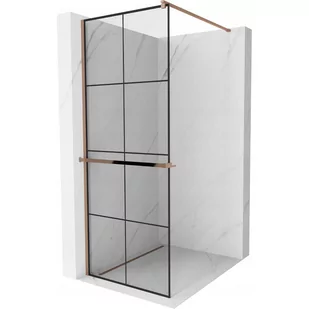 Szerokość: 80 cm Wysokość: 200 cm Montaż: Uniwersalny, prawa lub lewa Kolor szkła: Transparent/Czarny wzór Wykończenie: Różowe złoto Rodzaj szkła: