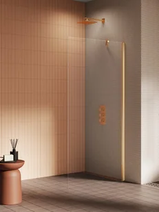 Model New Soleo Gold Brushed cechuje się eleganckimi złotymi akcentami o szczotkowanej powierzchni. Kabiny prysznicowe z ukośnym wspornikiem posiadają 6 mm bezpieczne, hartowane szkło z powłoką Active Shield 2.0. Można je montować z brodzikiem lub bez. Kolekcja ma 3-letnią gwarancję, a produkt dostępny jest również w wersji na zamówienie.