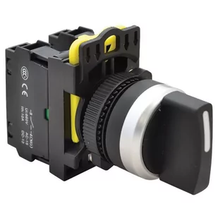 Przełączniki pokrętny zwykły NYK3-S31BK trzystanowy 1-0-2 Przełącznik pokrętny zwykły trzystanowy 1-0-2 : 230V. Kolor: czarny Styk: 2 x NO Znamionowy prąd roboczy: 6A Napięcie izolacji: 660V Średnica: