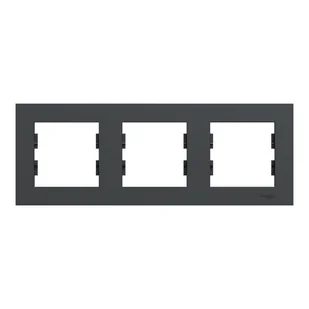 Ramka trzykrotna pozioma w kolorze antracytowym z serii Miluz ED to praktyczny i estetyczny element wykończeniowy, który doskonale pasuje do nowoczesnych wnętrz. Jej prosta forma i ciemna kolorystyka sprawiają, że idealnie komponuje się z osprzętem w tym samym odcieniu. . Przeznaczona do montażu trzech modułów w układzie poziomym. Doskonale sprawdza się w pomieszczeniach mieszkalnych i biurowych, gdzie liczy się funkcjonalność i spójność wizualna instalacji elektrycznej. . Ramka została wykonana z tworzywa ABS, które charakteryzuje się dobrą odpornością na uszkodzenia mechaniczne i trwałością koloru.
