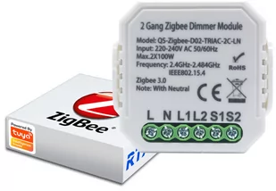 Ściemniacz 2 Kanały Dopuszkowy Zigbee Tuya RTX Inteligentny ściemniacz dopuszkowy 2-kanałowy Zigbee 3. 0Moduł przeznaczony do inteligentnego sterowania natężeniem światła za pomocą tradycyjnego podwójnego włącznika mechanicznegoUmożliwia automatyczne sterowanie oświetleniem - 2 obwodypraca według harmonogramu tygodniowego osobno dla każdego obwodudziałanie według scenariusza uzależnione od zadziałania innych elementów systemu lub warunków, np. czujnika ruchu, pory dnia itp. Sterowanie zdalne smartfonem lub lokalne tradycyjnym pojedwójnym przełącznikiem monostabilnym (chwilowym)Bardzo mała obudowa - można zainstalować wewnątrz puszki pod włącznikiemWspółpracuje z centralką - bramką ZigBee w ramach aplikacji Tuya Smart Life . Do działania urządzeń ZigBee konieczne jest posiadanie centralki-bramki ZigBee będącej "węzłem" po między elementami systemu a serwerem cloud Tuya Smart.